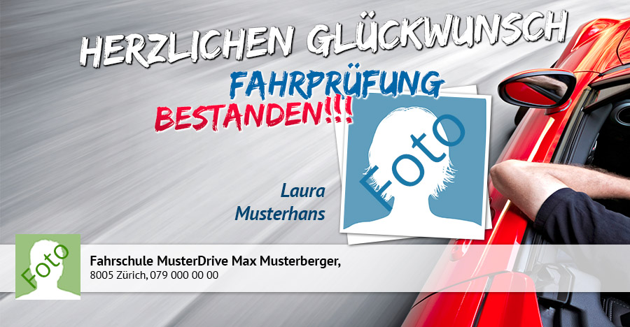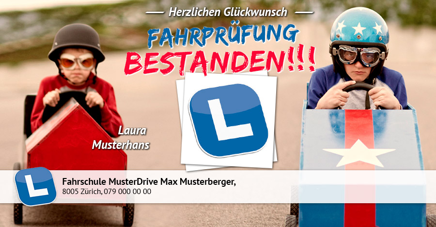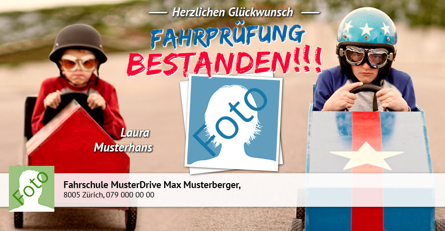 Überraschen Sie Ihre Fahrschüler nach bestandener Prüfung mit einer persönlichen Grusskarte, welche Sie dank der App blitzschnell und einfach per SMS, WhatsApp oder E-Mail versenden. Die originellen Glückwunschkarten können von den Empfängern mit einem Klick via Facebook gepostet werden und Ihre Fahrschule wird damit auf sympathische Art und Weise im Freundeskreis Ihres Fahrschülers bekannt gemacht.